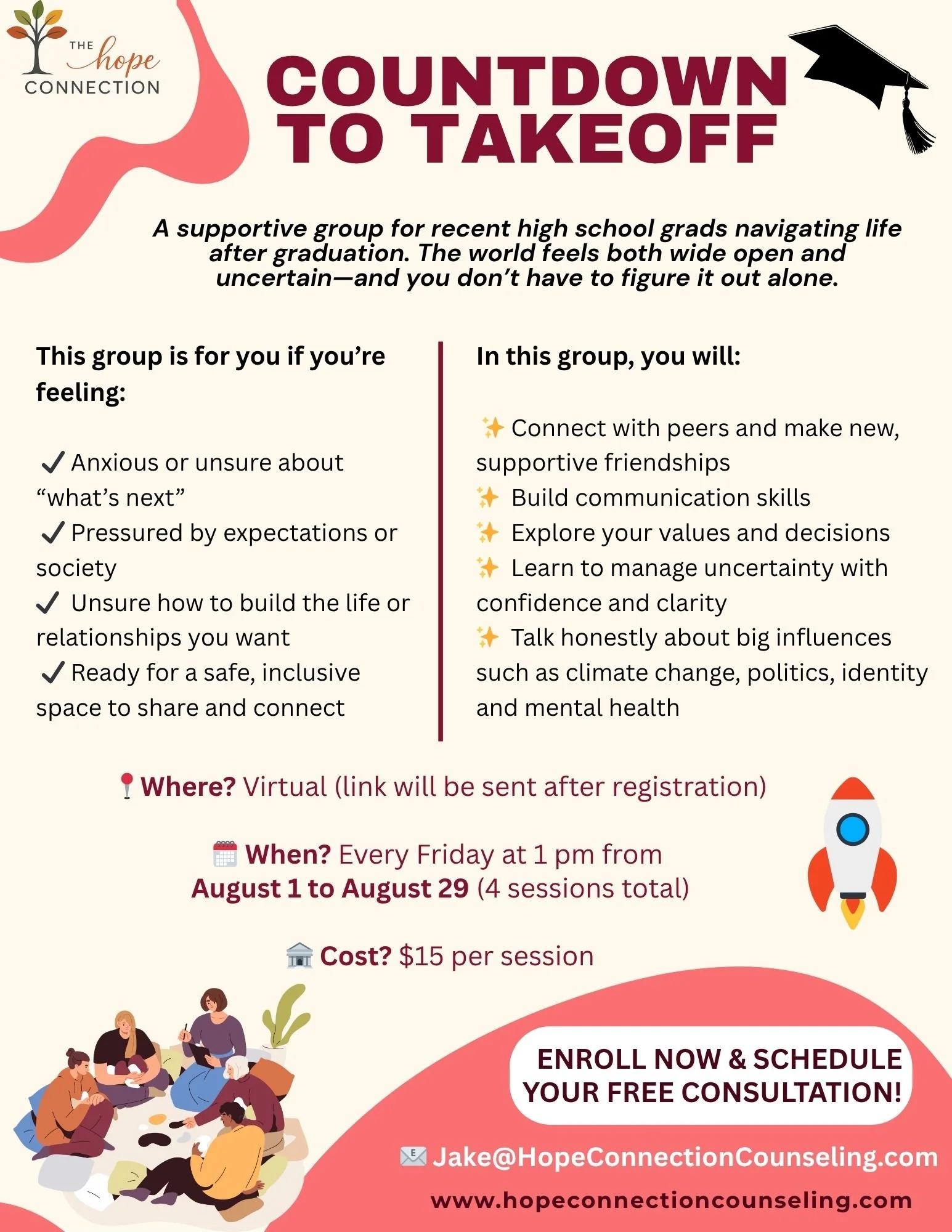 Counseling services tailored to the individual and can involve, but not limited to, depression, anxiety, panic attacks, PTSD, stress management, ADHD, grief & loss, LGBTQ+ support, domestic violence, divorce, body image, self-harm, identity, parenting support, conflict resolution, transitions, addiction/recovery, and so much more